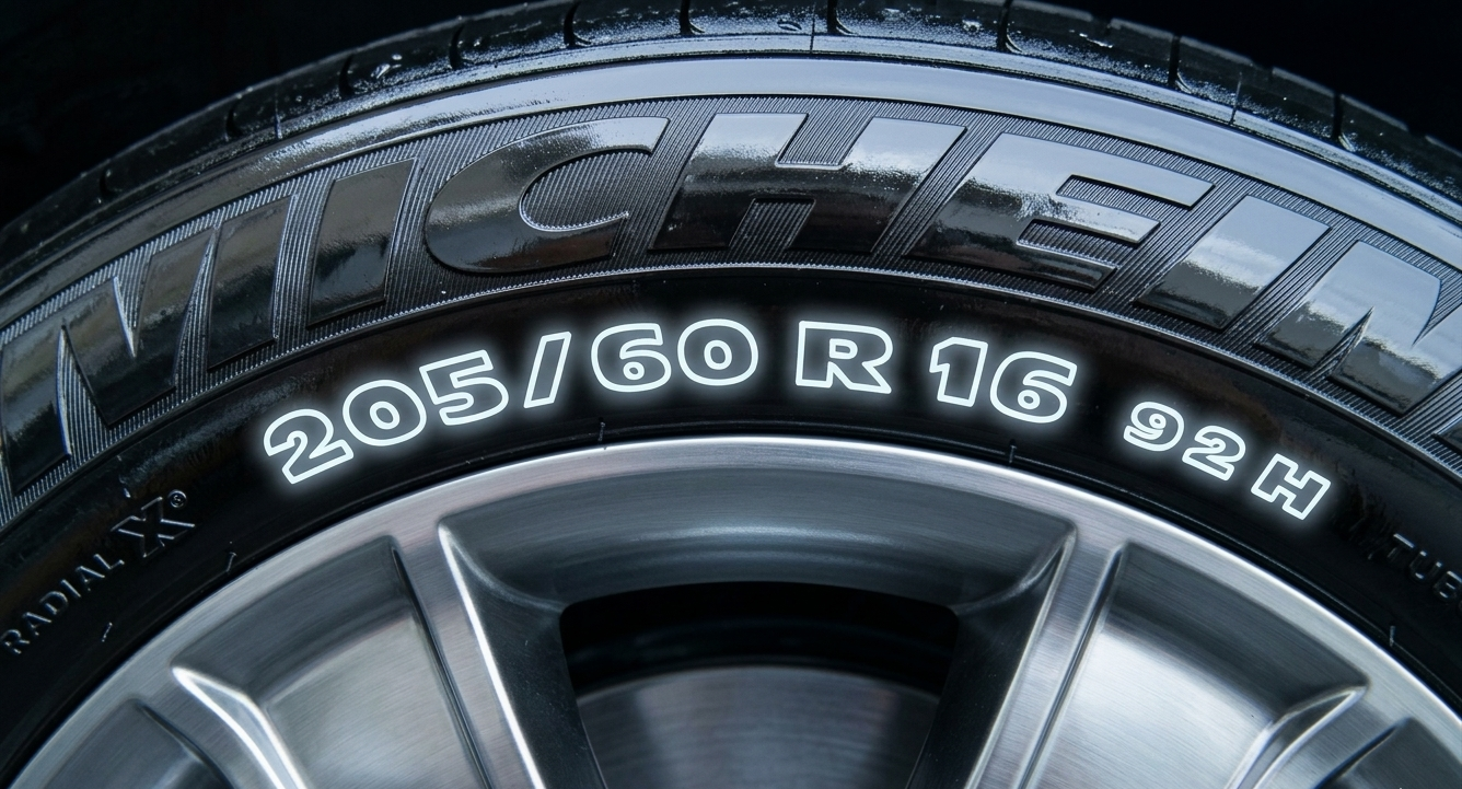 N.B. La misura del pneumatico è indicata sulla spalla (il lato della gomma). Nell'esempio qui riportato, la misura è 205/60 R16 92H.